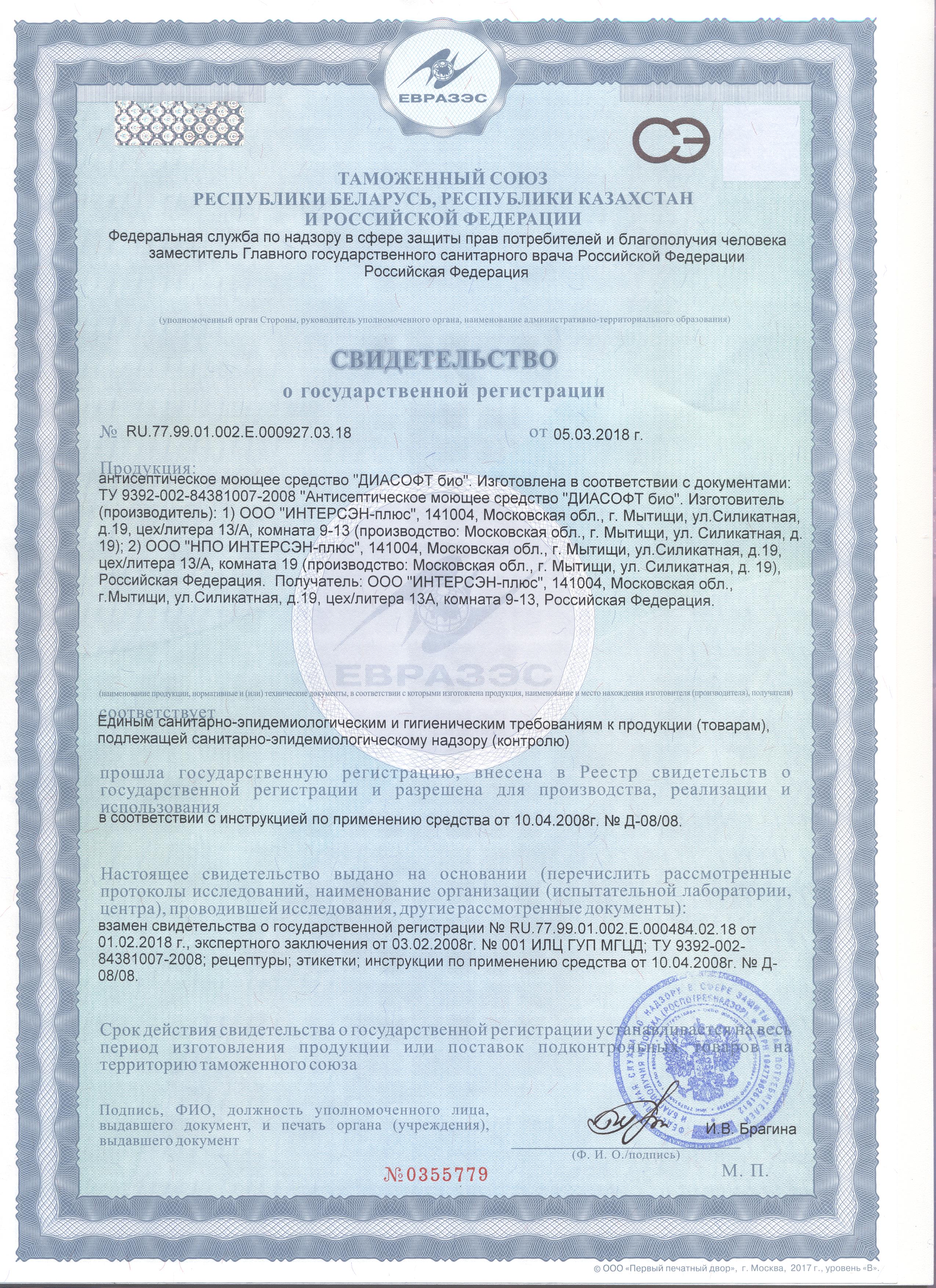 Антисептическое антибактериальное мыло Диасофт био с дозатором (250 мл)