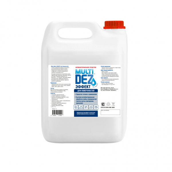"Мультидез-Эффект" - для мытья и дезинфекции поверхности обладает антимикробной активностью в отношении бактерий (включая туберкулез), вирусов (гриппа, в т.ч. птичьего, свиного и т.д. полиомиелита, энтеровирусы, гепатиты, ВИЧ-инфекция, атипичная пневмония), грибов (рода Кандида, Трихофитон, плесневые грибы).