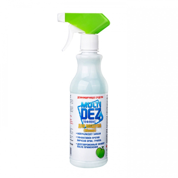 Дезинфицирующее средство "Мультидез-Тефлекс для воздуха" объединяет в себе свойства бытового освежителя и профессионального дезинфектанта, применяемого в медицине (ЛПУ). Дезсредство предназначено для дезинфекции воздуха и профилактики инфекционных заболеваний населением в быту, на объектах коммунального назначения. Уничтожает инфекции, передающиеся по воздуху (ОРВи, грипп, туберкулёз и пр.). Безопасен для человека и животных.