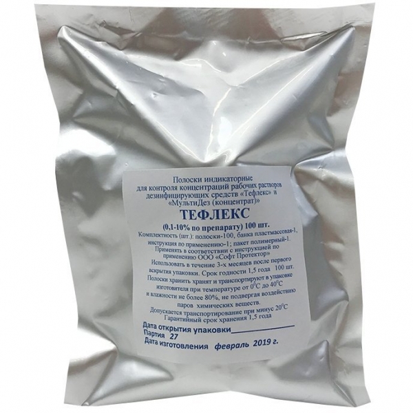 Полоски индикаторные МультиДез-Тефлекс одноразовые, 100 штук в упаковке.