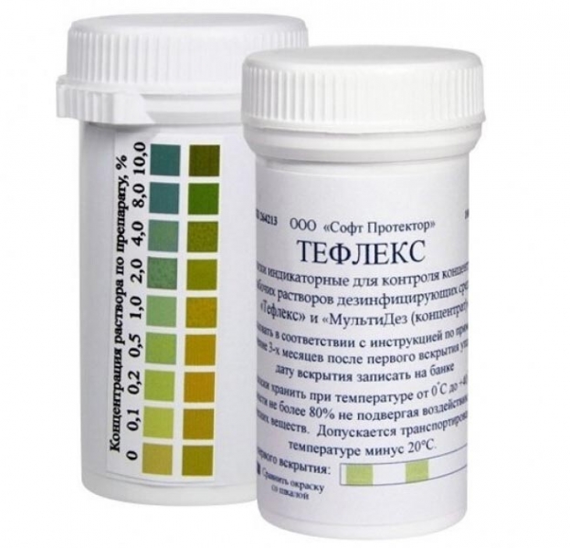 Полоски индикаторные для контроля концентраций рабочих растворов и дезинфицирующих средств "Тефлекс" и "Мультидез (концентрат)